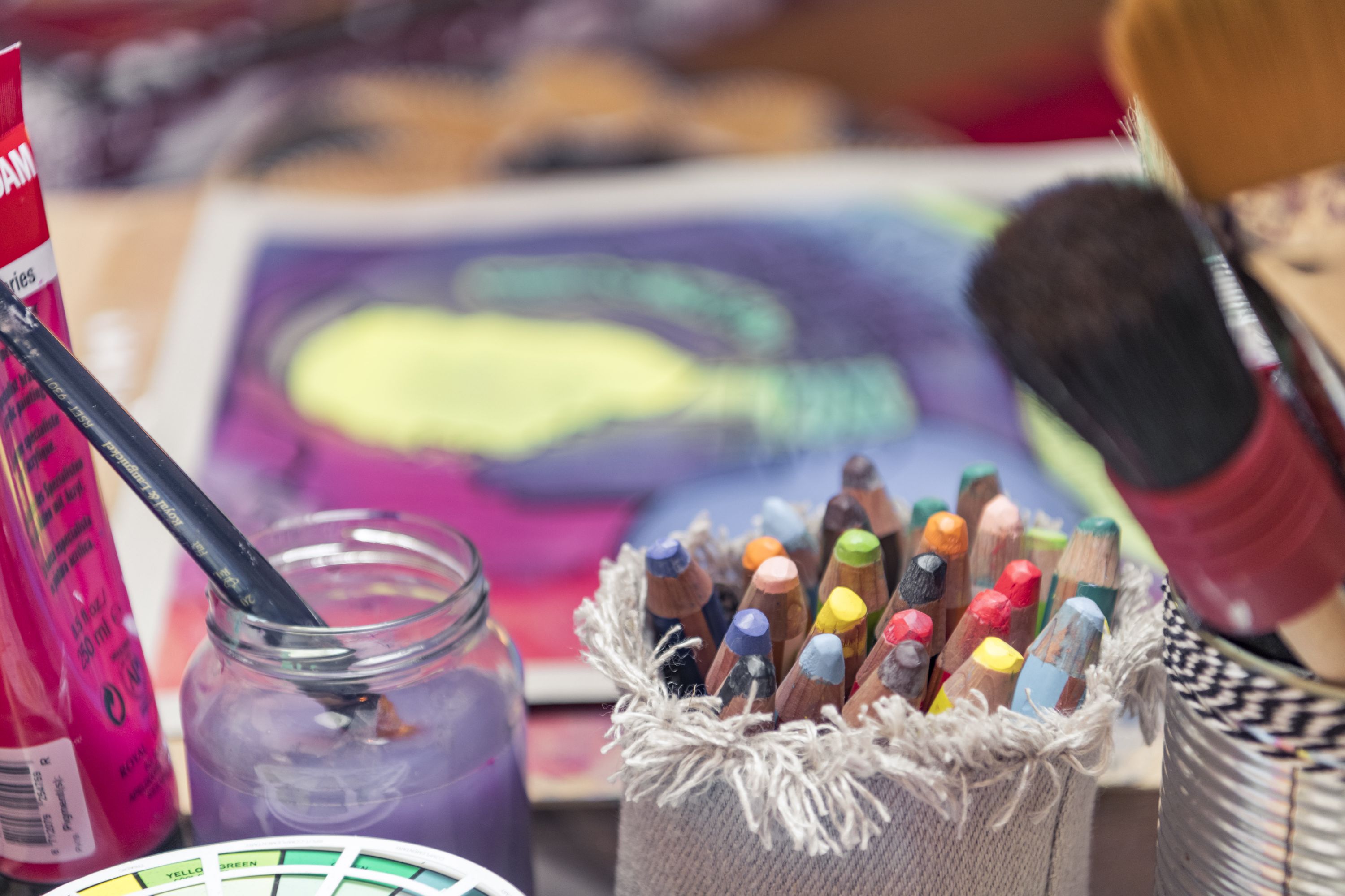 Irene führt dich dann in den zweiten Teil, den künstlerischen Raum. Hier kannst du fern von kunsthandwerklichen Ansprüchen und frei von Ergebnisdruck, Künstler:in sein, indem du einen unnachahmlichen Ausdruck findest für das, was gerade in dir ist. Ob durch Malen, Zeichnen, Schreiben, Plastiken, Collagen etc. – du kannst dich überraschen lassen was durch dich entsteht.
