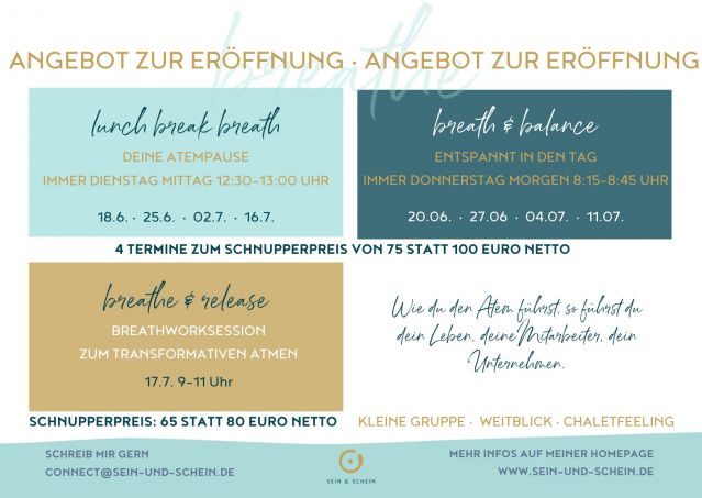 LUNCH BREAK BREATH, deine Atemroutine immer Dienstag Mittag von 12:30-13:00 Uhr: vier Termine für 75 statt 100 Euro